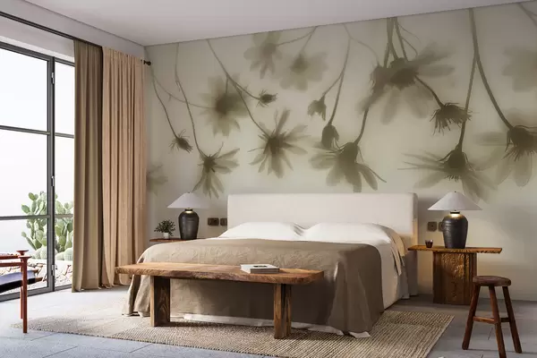 Fotomurales Delicadas flores en la niebla colgando desde arriba en colores pastel. Nr. w01469v1