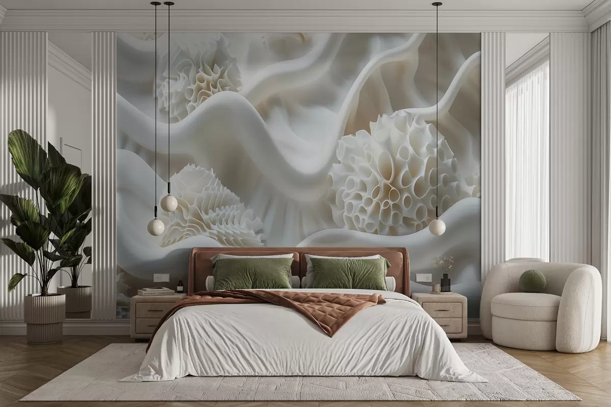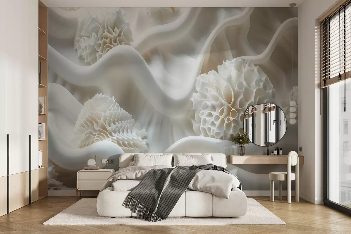 Fotomurales Fondo abstracto ondulado de formas blancas en estilo 3D Nr. w01475