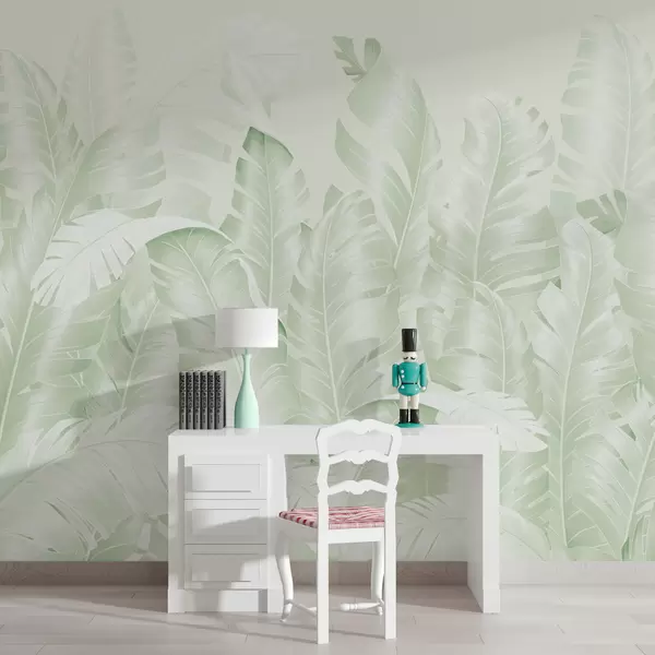Fotomurales Hojas tropicales de color verde pastel de moda Nr. w01481v2