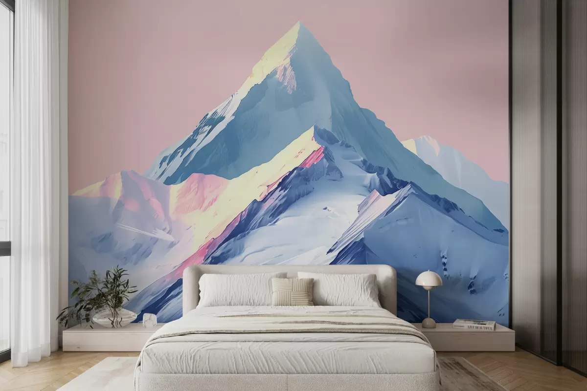 Fotomurales Montañas azules y rosas en estilo dibujado. Nr. w01497