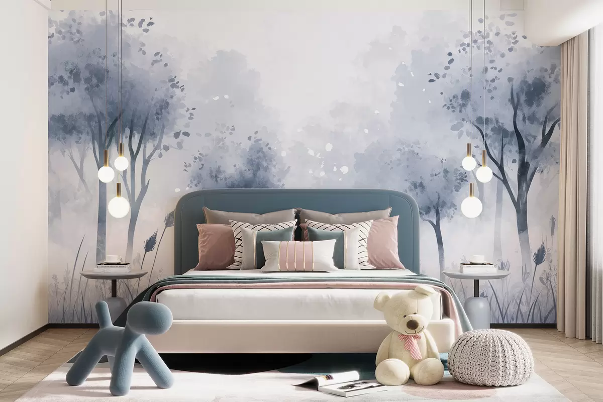 Fotomurales Bosque de acuarela con hierba y árboles, color gris Nr. w01546v2
