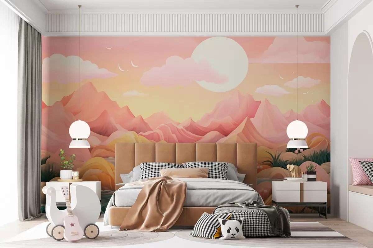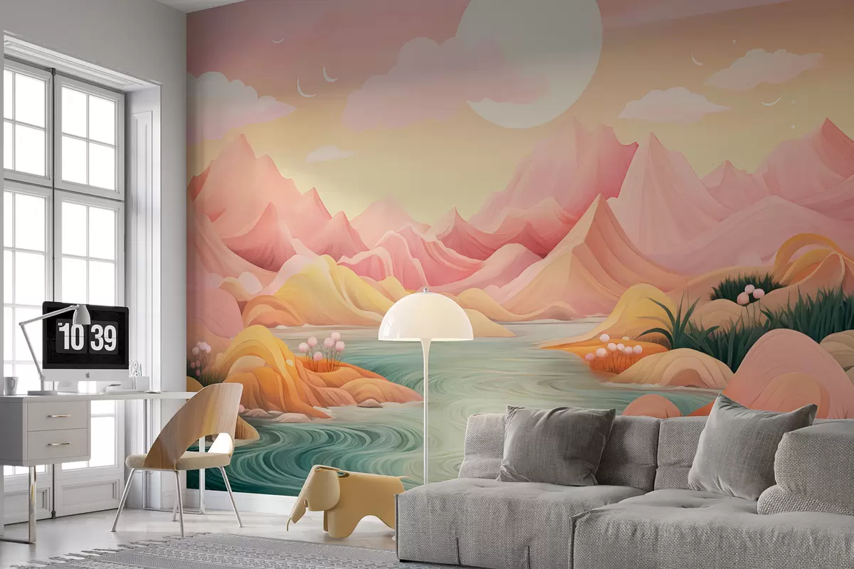 Fotomurales Fantástico paisaje de colores pastel con suaves montañas rosas y melocotón Nr. w01656