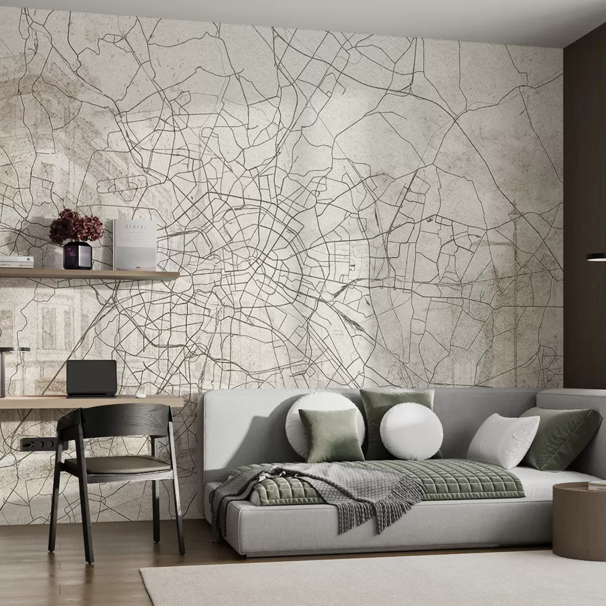 Fotomurales Mapa de la ciudad de Berlín, dibujo lineal, arquitectura, Alemania, colores beige Nr. w01696