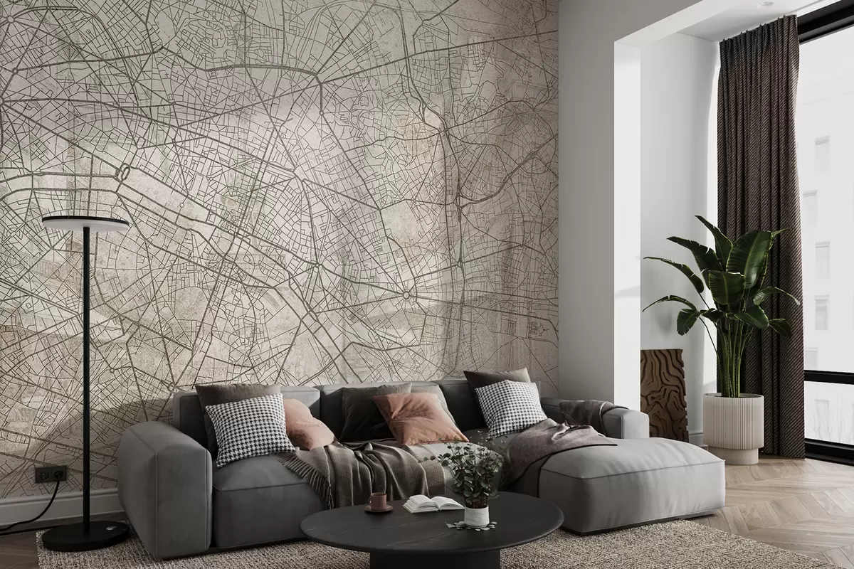 Fotomurales Mapa de la ciudad de París, dibujo lineal, arquitectura, Francia, colores beige Nr. w01697
