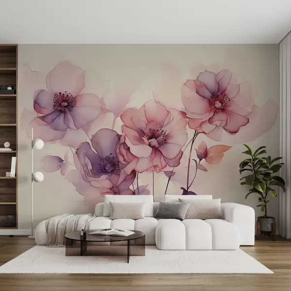 Fotomurales Flores translúcidas de acuarela húmeda, color rosa púrpura Nr. w01776