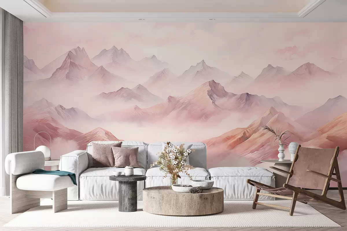 Fotomurales Montañas con nubes, acuarela, suaves colores beige y rosa Nr. w01790
