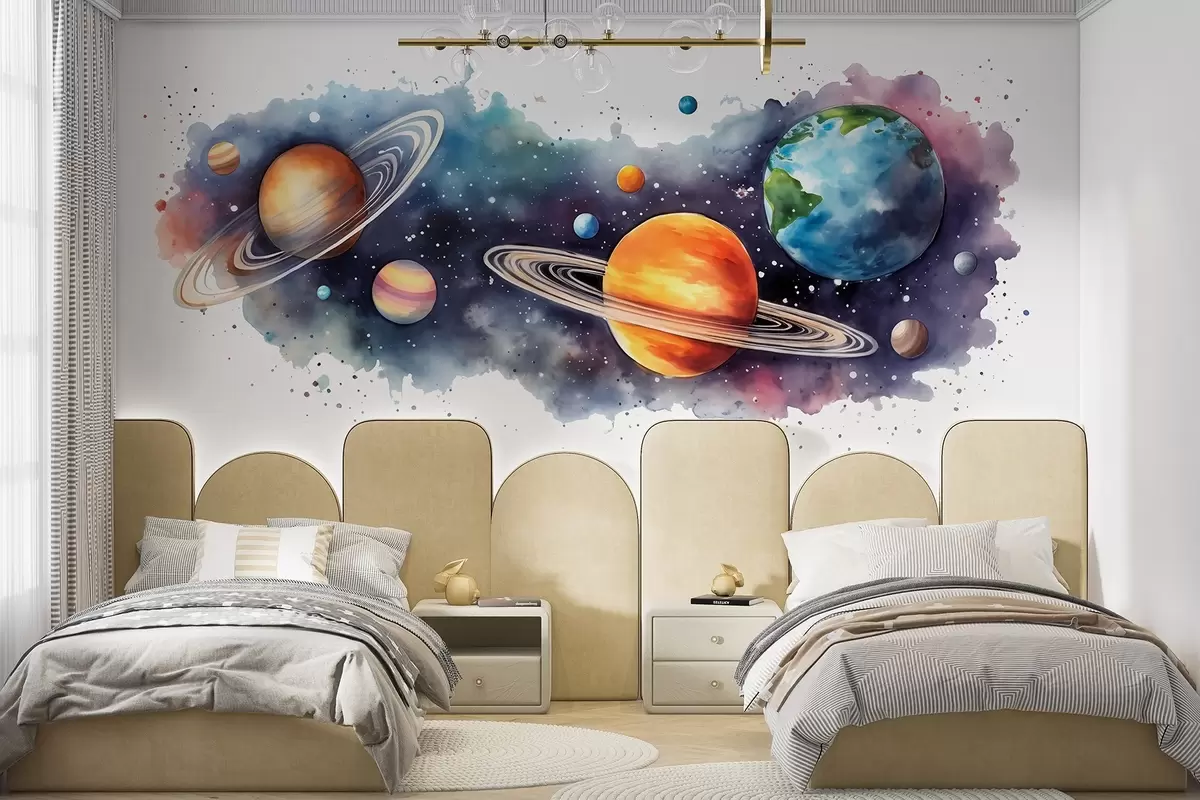 Fotomurales Acuarela planetas, espacio, cósmico, Tierra, Saturno Nr. w01802