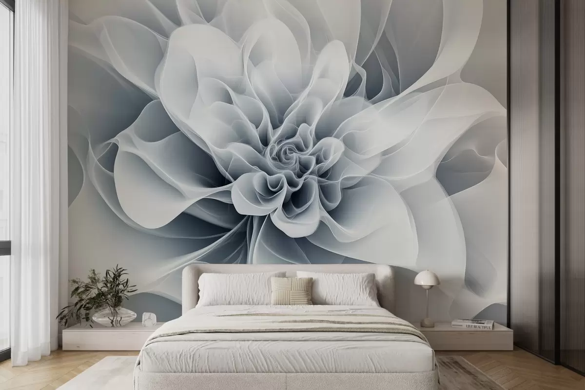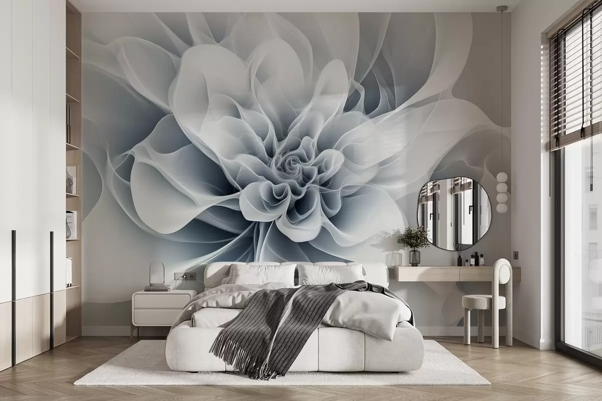 Fotomurales Elegante imagen abstracta de una flor con líneas suaves en azul Nr. w01853