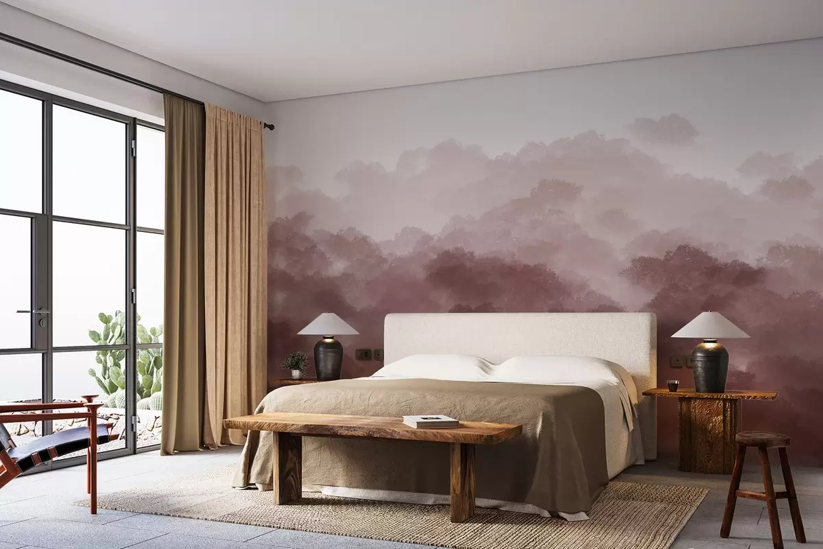 Fotomurales Bosque en la niebla, paisajes de naturaleza, color beige Nr. w01880v2