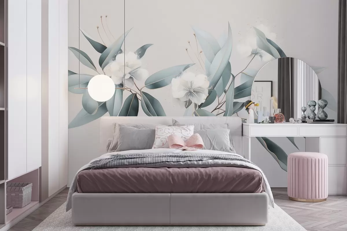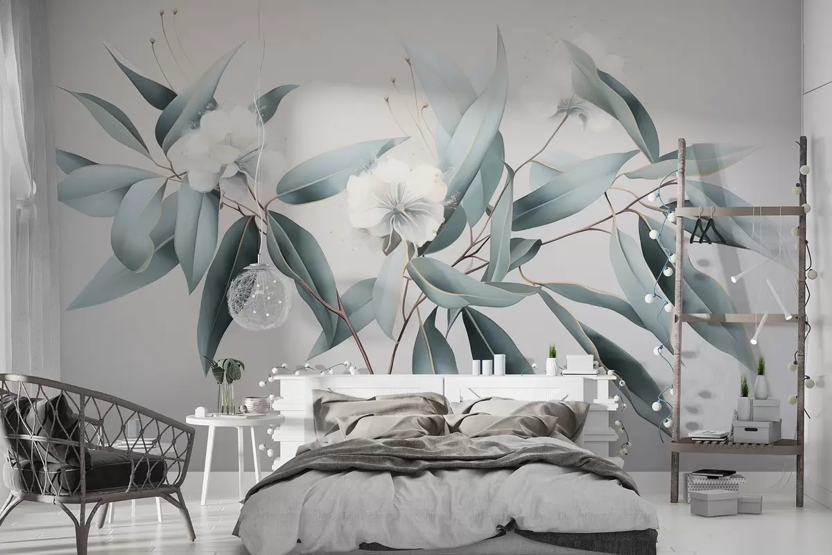 Fotomurales Flores de algodón, naturaleza, dibujo acrílico, colores grises suaves Nr. w01884