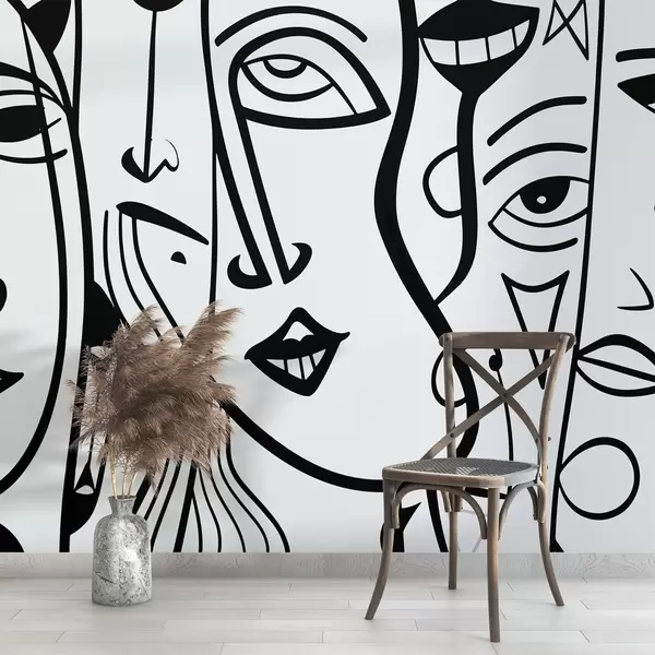 Fotomurales Caras abstractas en estilo de decoración de arte lineal Nr. w02033