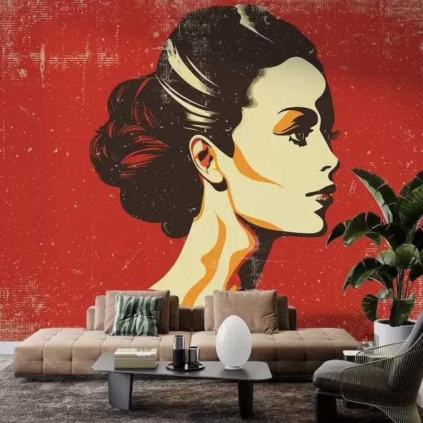 Fotomurales Chica retro sobre fondo rojo Nr. w02055v3