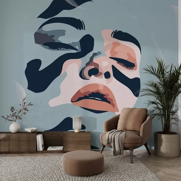 Fotomurales Cara de niña sobre fondo azul, pintada con colores Nr. w02060v1