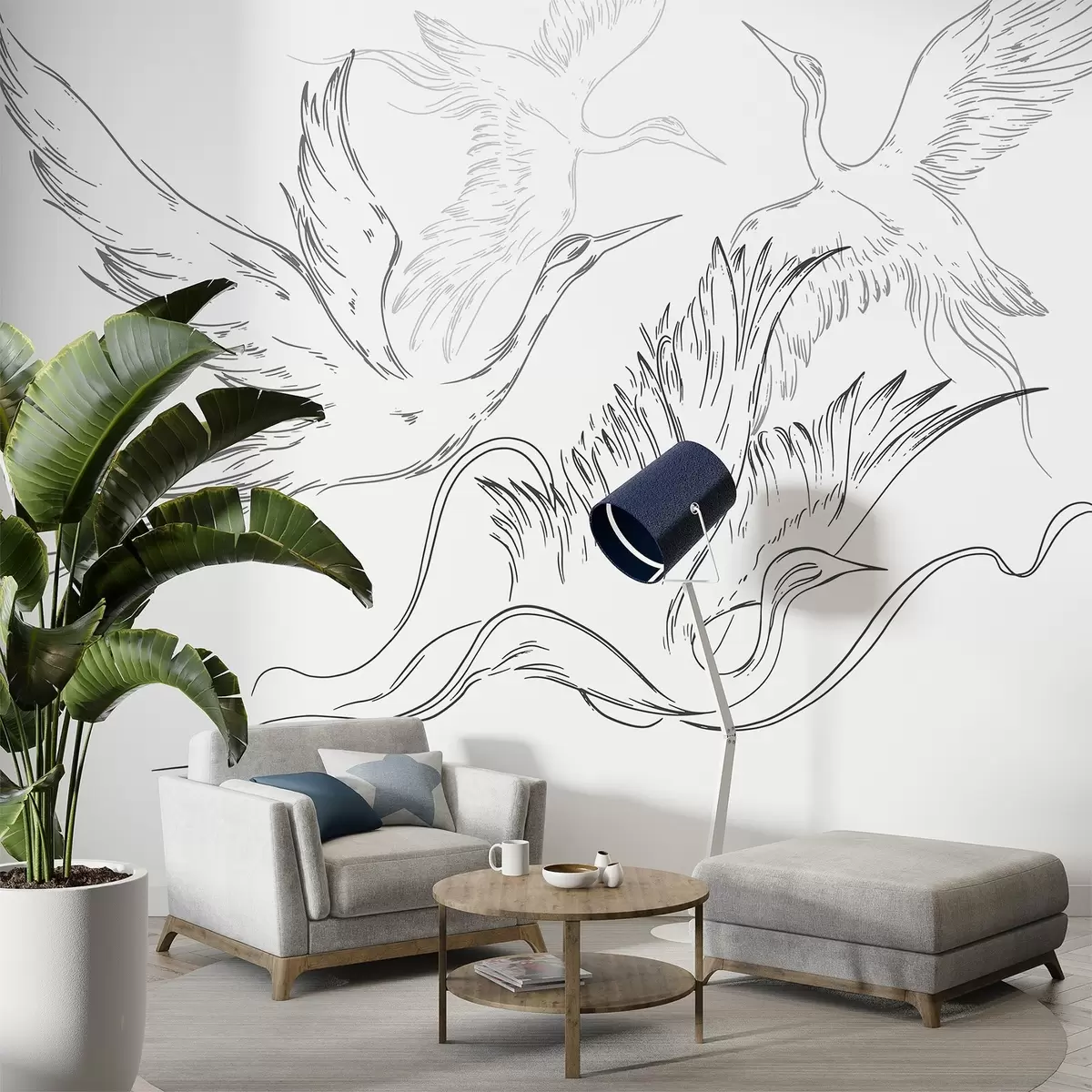 Fotomurales Pájaros volando, minimalismo, arte lineal, naturaleza, color gris Nr. w02061