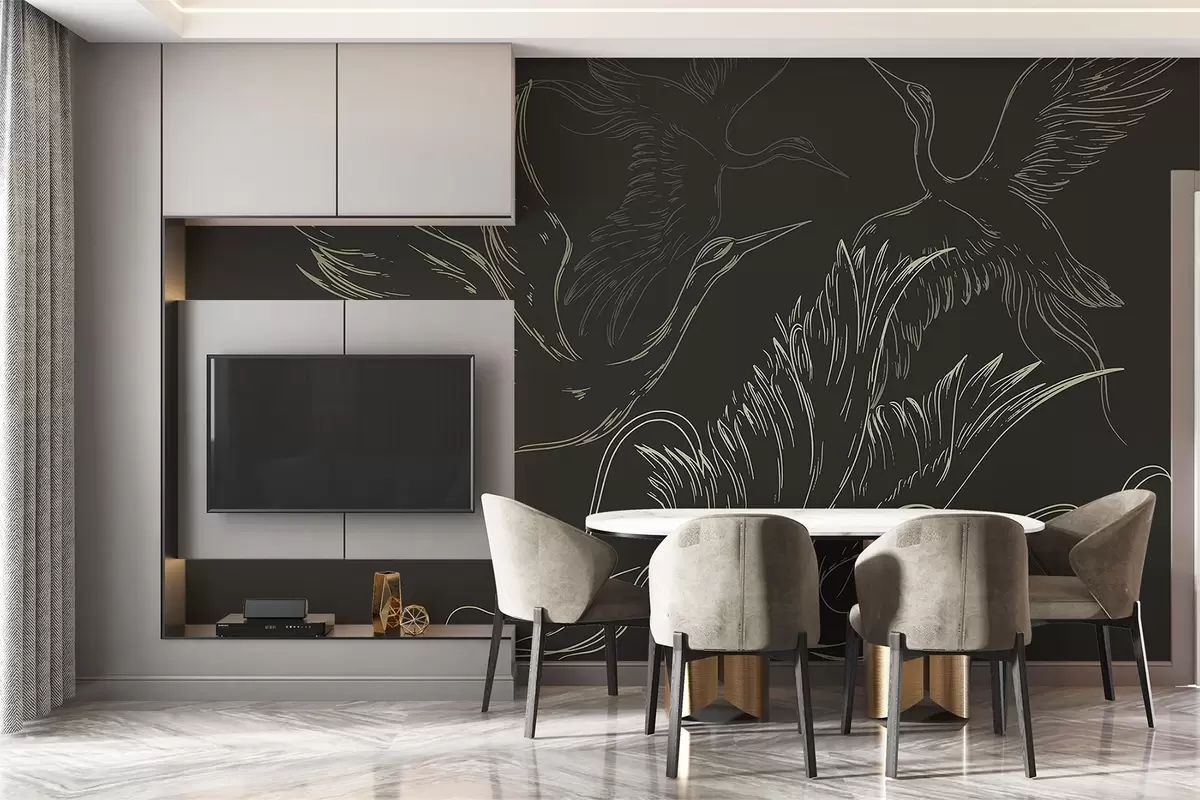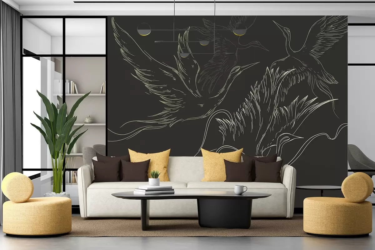 Fotomurales Pájaros volando, minimalismo, arte lineal, naturaleza, fondo oscuro Nr. w02061v3