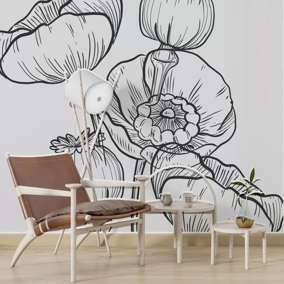 Fotomurales Flor de amapola gris oscuro, con líneas,Amapola Nr. w02100v1