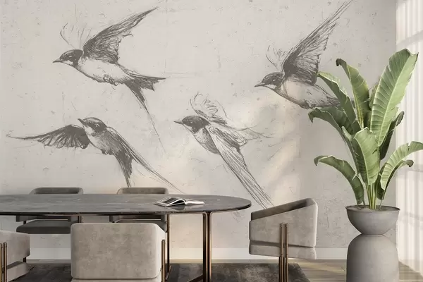 Fotomurales Pájaros voladores, dibujo a tinta, minimalismo, colores grises Nr. w02155