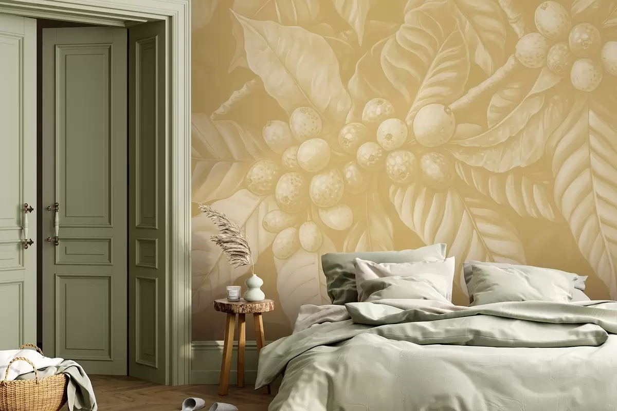 Fotomurales Ramas de cafeto con frutas y elementos tropicales en tonos beige Nr. w02209v1