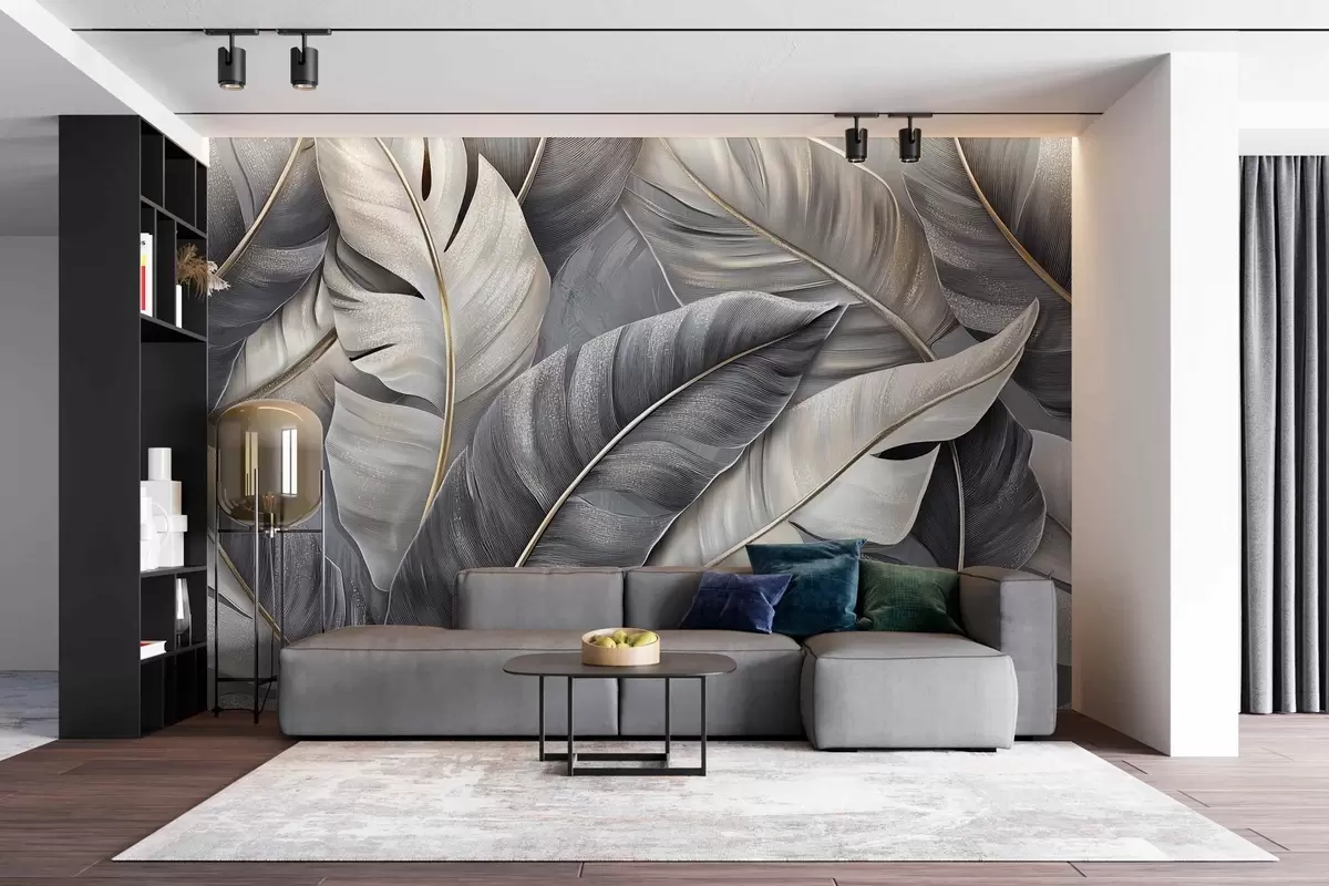 Fotomurales lujoso papel pintado con grandes hojas tropicales Nr. w02342