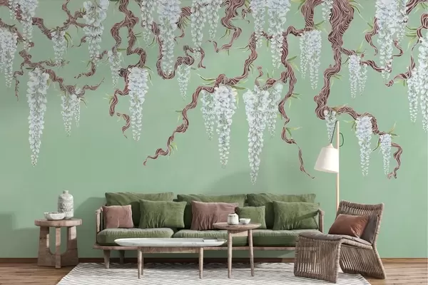 Fotomurales Glicinias azules sobre fondo verde grunge Nr. w02372v3