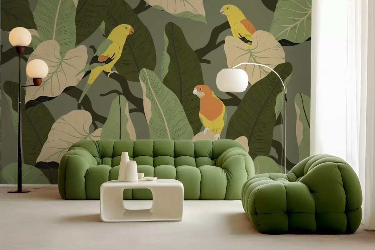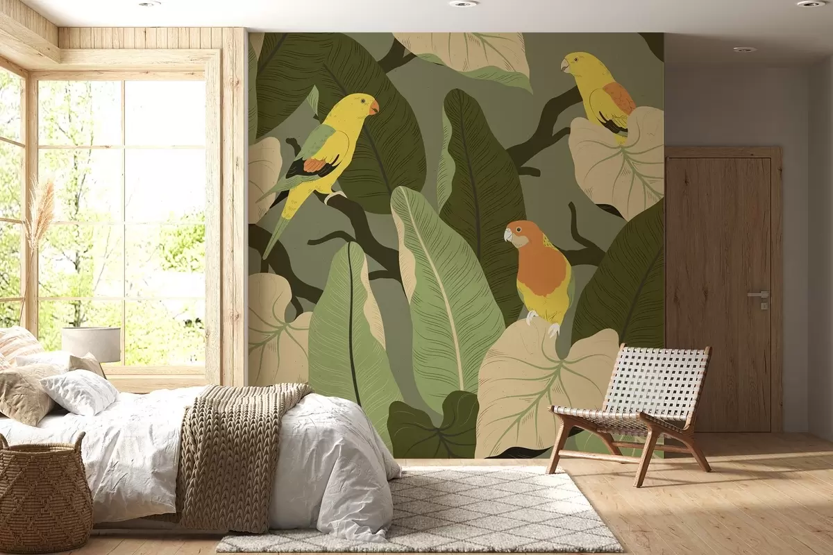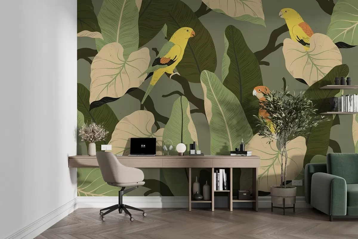 Fotomurales hojas tropicales con loros Nr. w02402