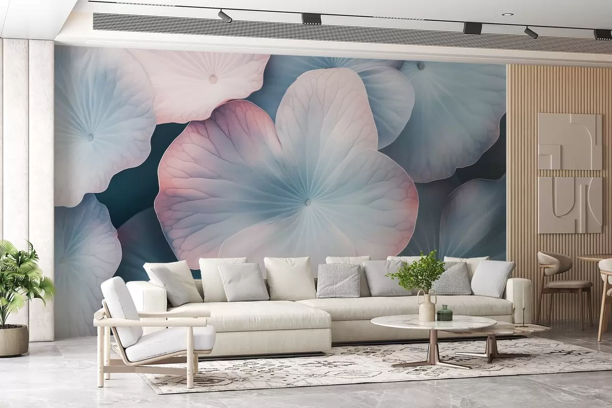 Fotomurales grandes hojas de loto de delicados colores Nr. w02403