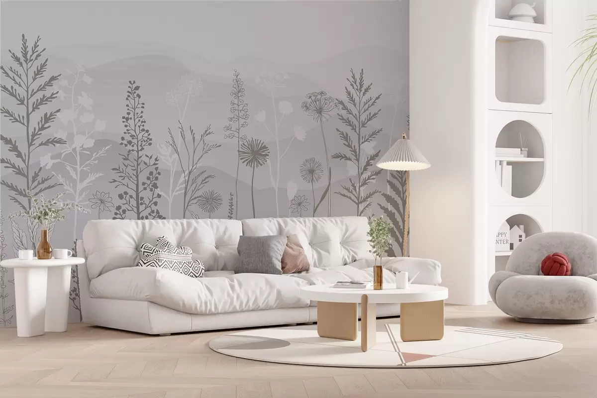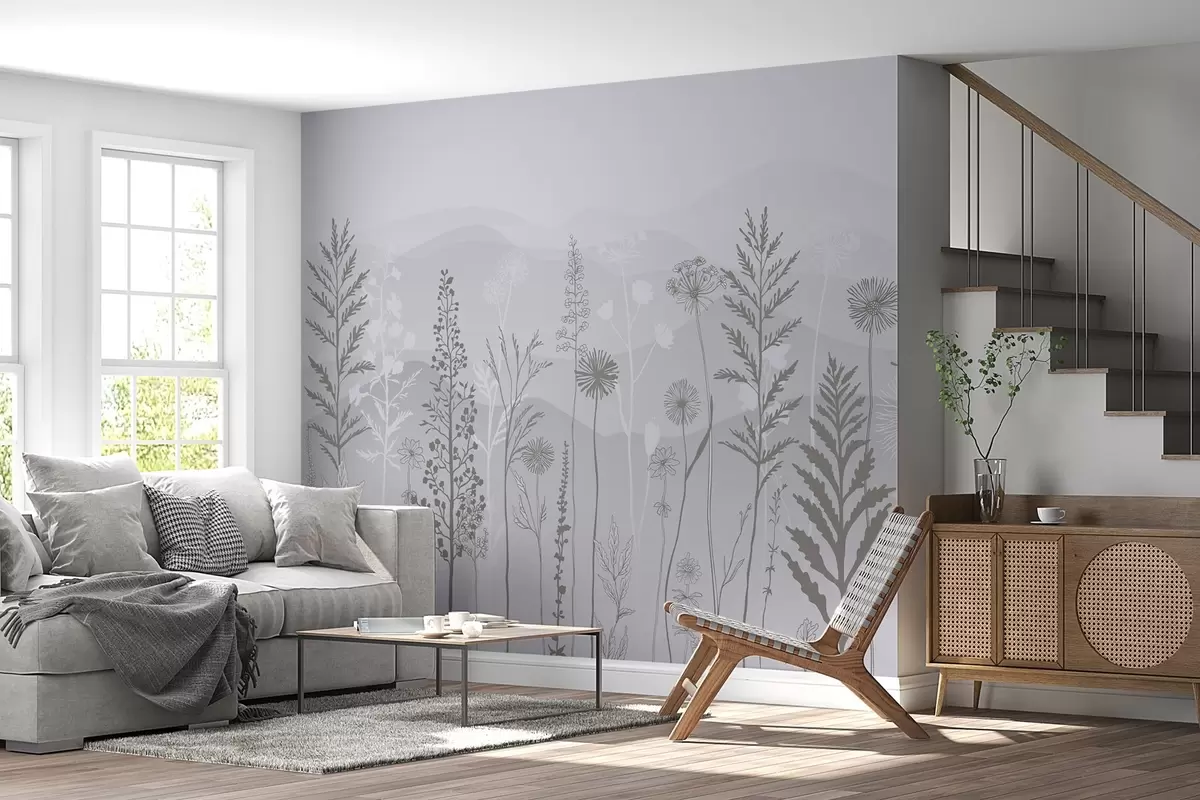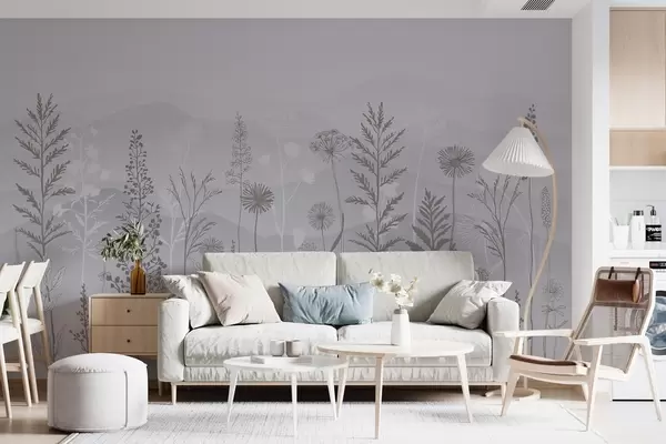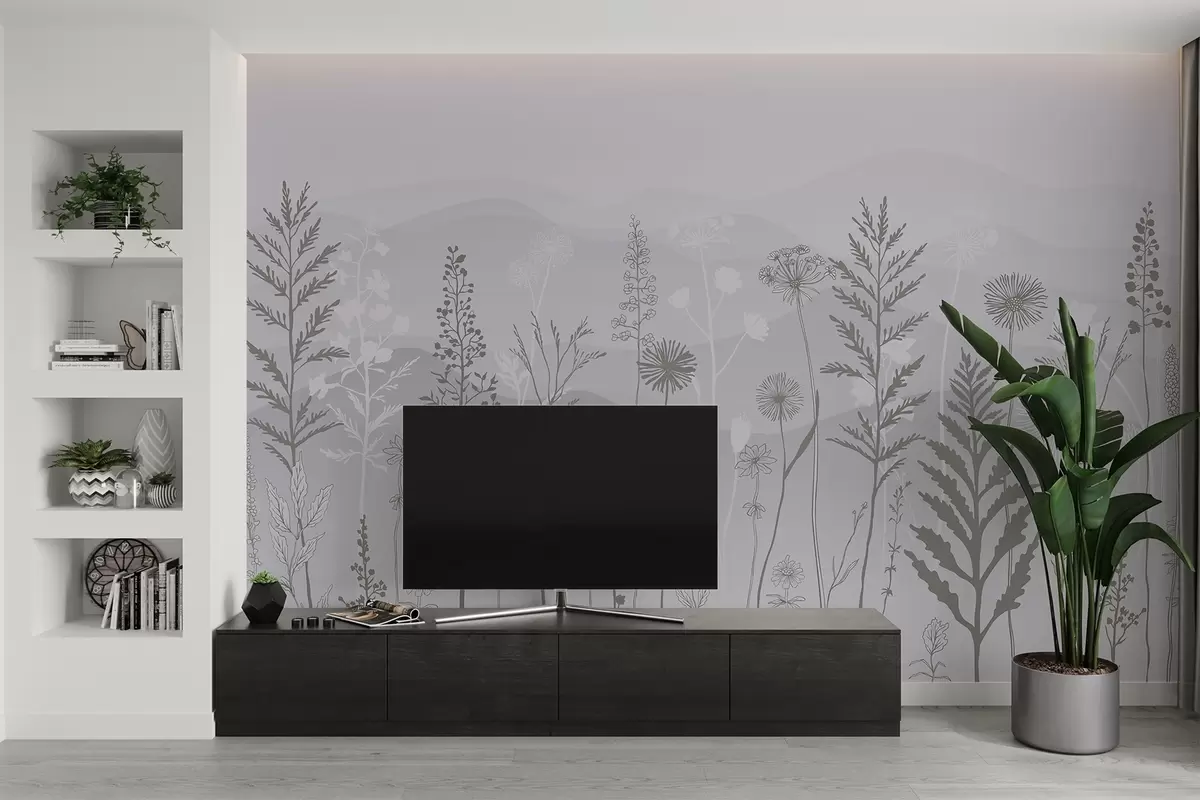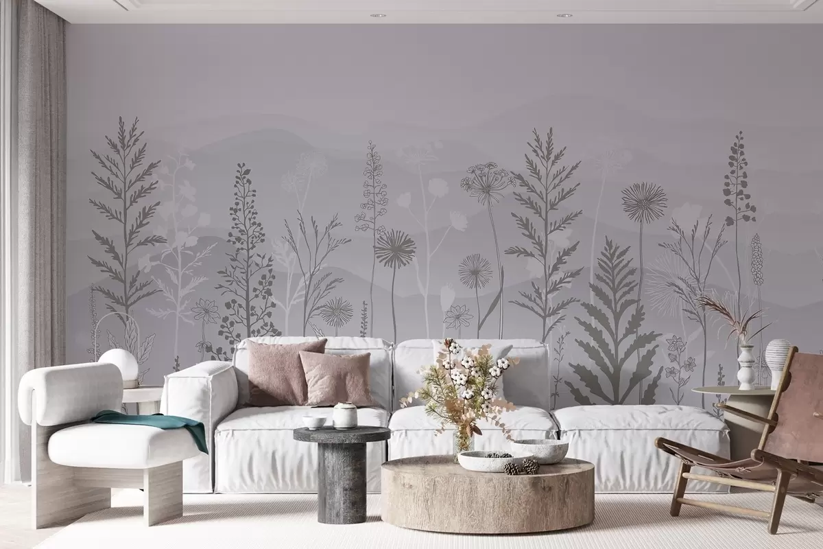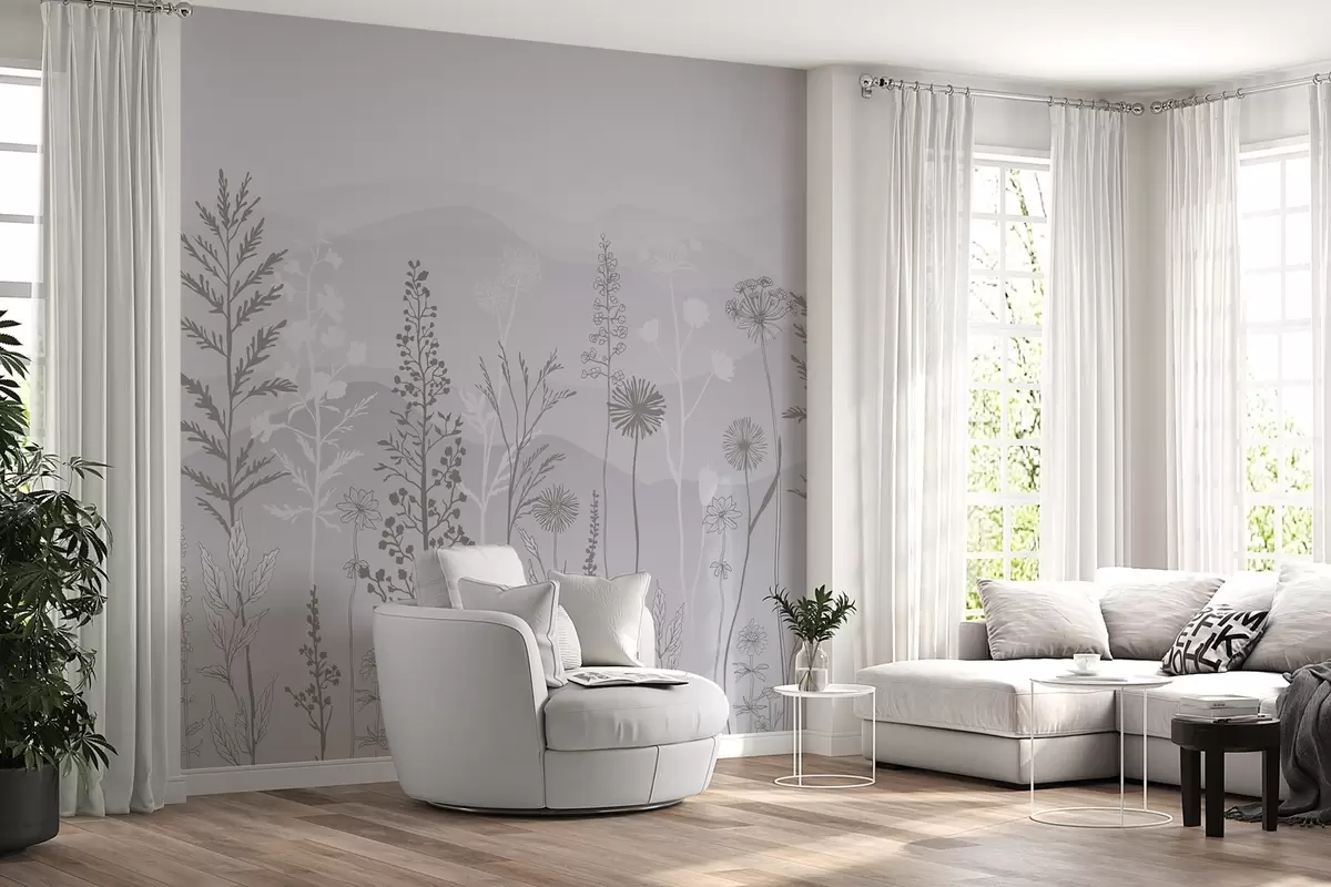 Fotomurales papel pintado ecológico, flores silvestres en tonos grises Nr. w02443