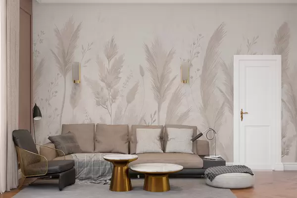 Fotomurales Delicadas flores silvestres y espiguillas en suaves colores pastel Nr. w02446
