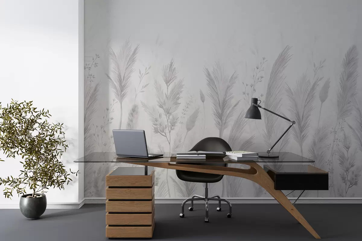 Fotomurales Delicadas flores silvestres y espiguillas en tonos grises pastel Nr. w02446v1