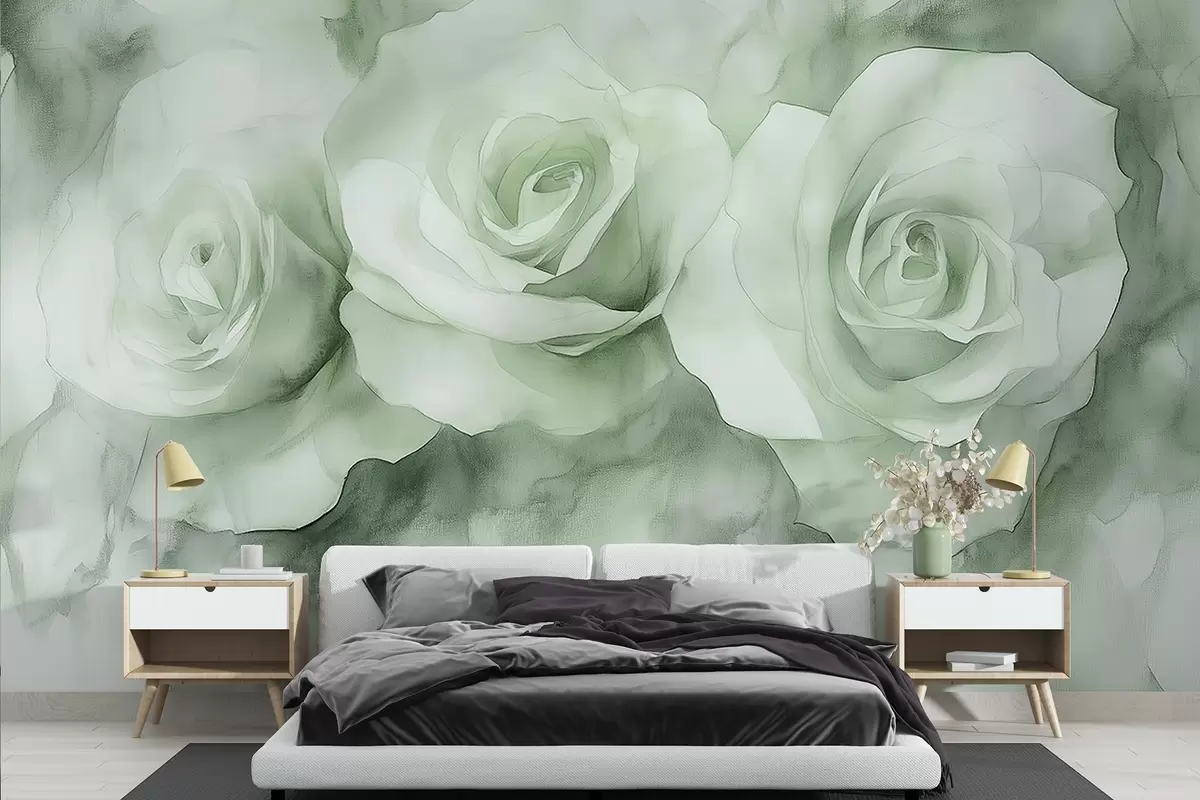 Fotomurales Hermosas rosas, estilo acuarela, colores verdes, bohemio Nr. w02492v2