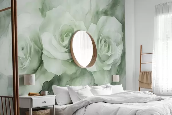 Fotomurales Hermosas rosas, estilo acuarela, colores verdes, bohemio Nr. w02492v2