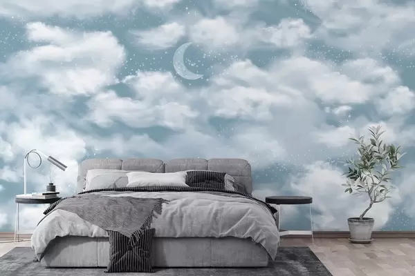 Fotomurales Cielo estrellado con luna y nubes, de ensueño, etéreo, colores azules suaves Nr. w02515v1