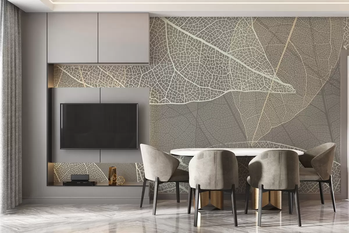 Fotomurales primer plano de hojas con venas en tonos grises cálidos Nr. w02520v2