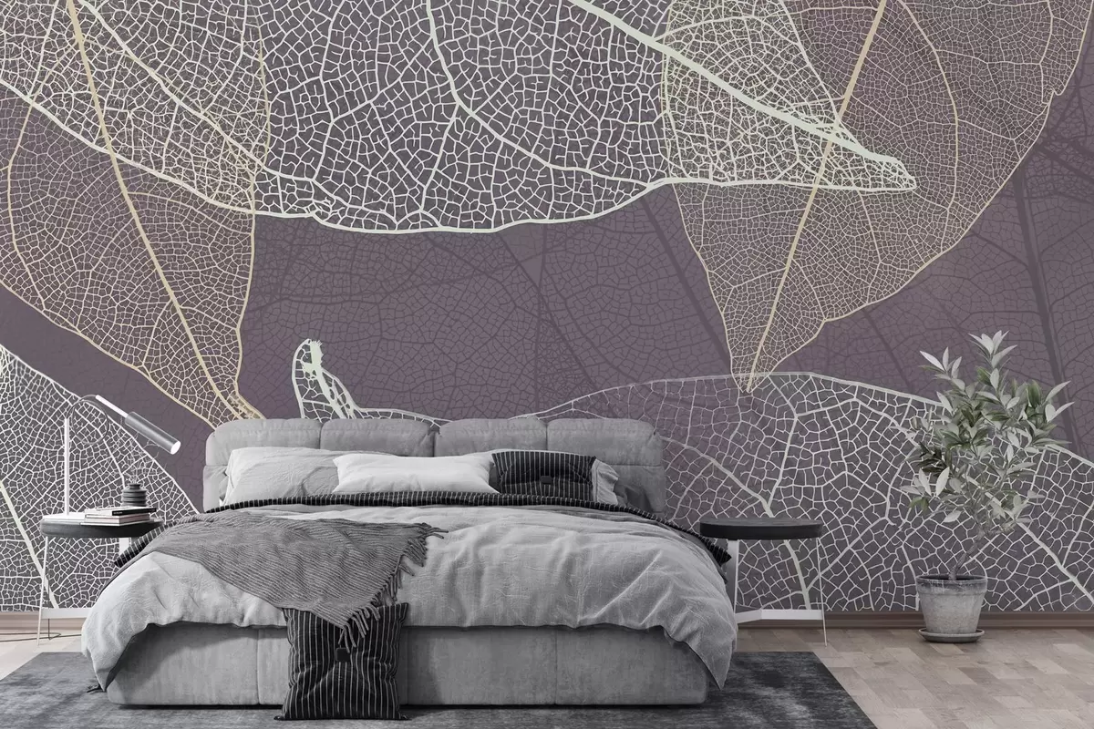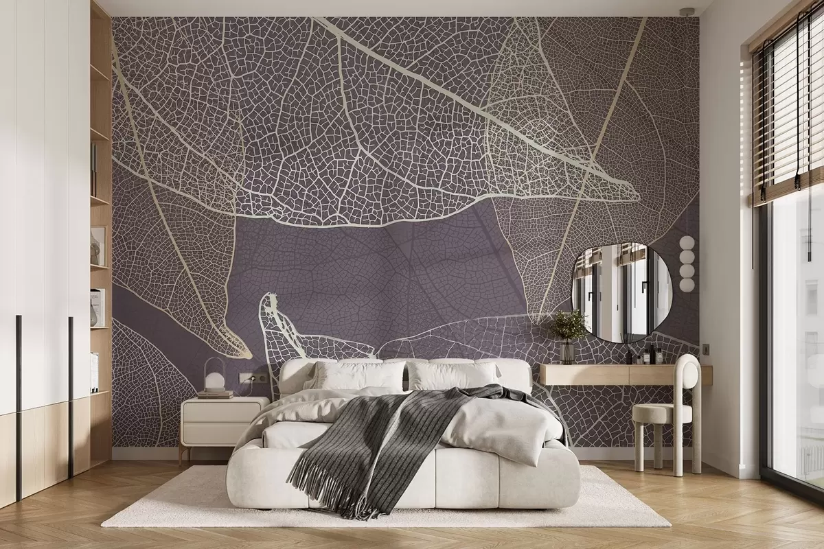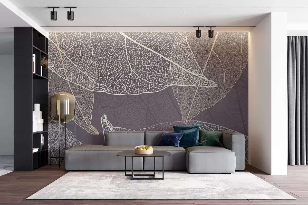 Fotomurales primer plano de hojas con venas en tonos gris púrpura Nr. w02520v3