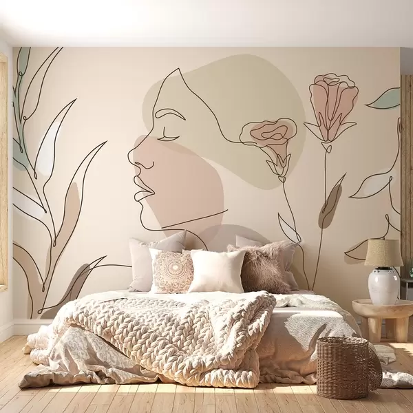 Fotomurales Chica con líneas, flores de colores Nr. w02543