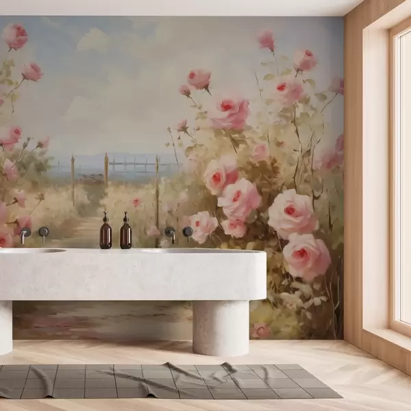 Fotomurales Jardín con rosas imitación de trazos de pintura Nr. w02590