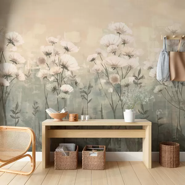 Fotomurales Delicadas flores silvestres con efecto de pinceladas en amarillo y beige Nr. w02629v1