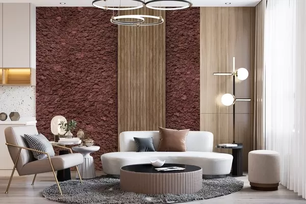 Fotomurales Pared estilo musgo con panel de madera, exuberantes colores burdeos Nr. w02656v1