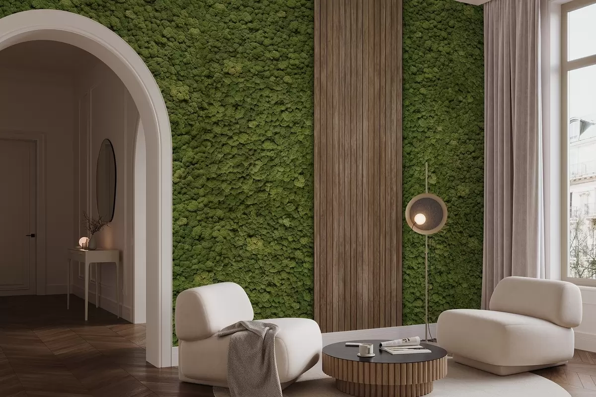 Fotomurales Pared estilo musgo con panel de madera, exuberantes colores oliva Nr. w02656v3