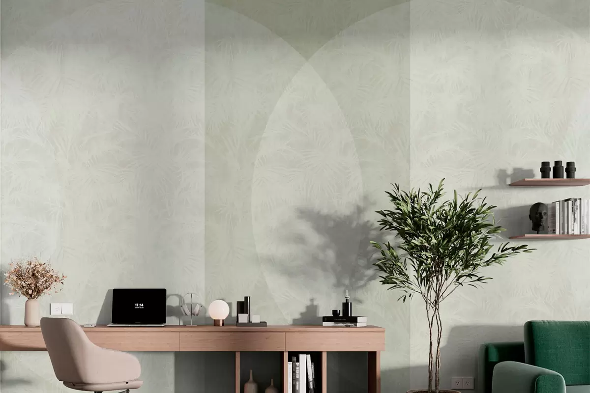 Fotomurales Geometría minimalista y hojas tropicales Nr. w02830v2