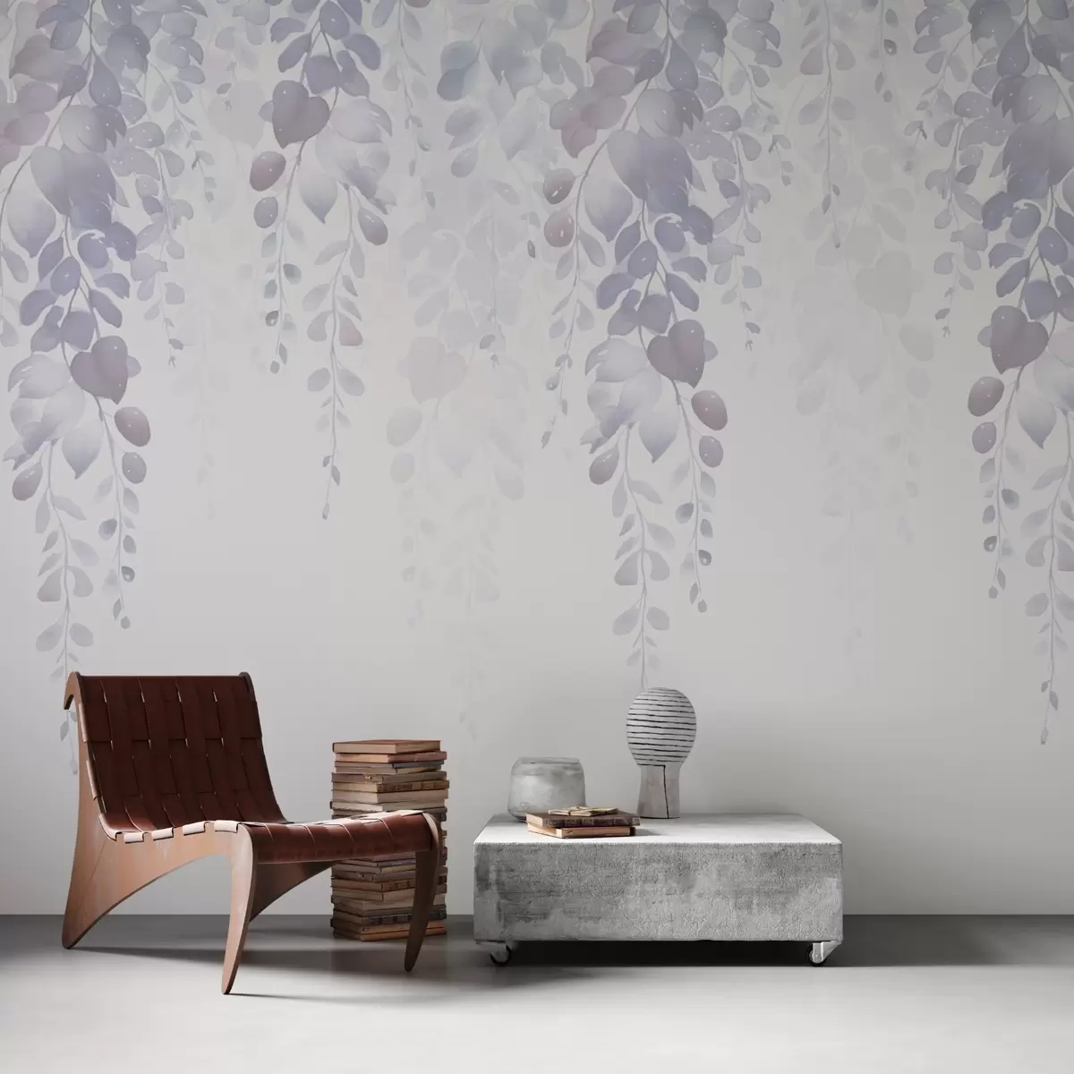 Fotomurales Ramas colgantes con hojas imitación acuarela tonos morados Nr. w02885v1