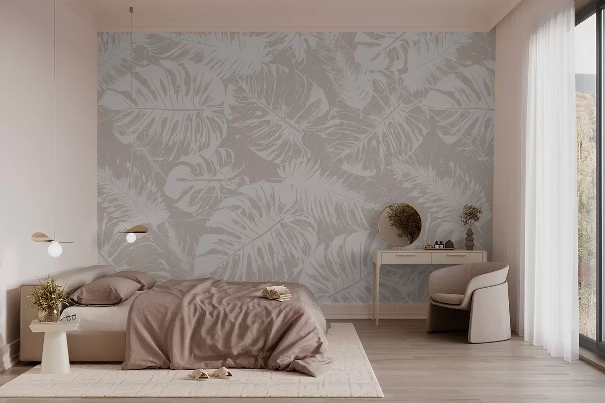 Fotomurales Siluetas de hojas blancas sobre fondo texturizado Nr. w02895v1