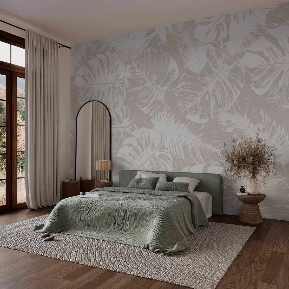 Fotomurales Siluetas de hojas blancas sobre fondo texturizado Nr. w02895v1