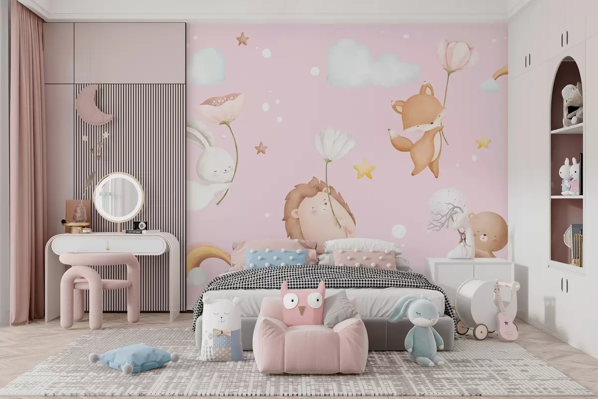 Fotomurales Animales con flores sobre fondo rosa Nr. w02897