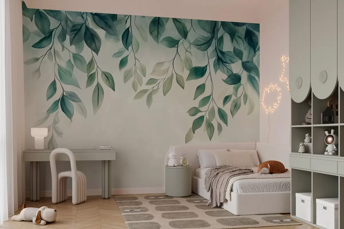 Fotomurales hojas verdes estilo acuarela colgando de la parte superior Nr. w03024