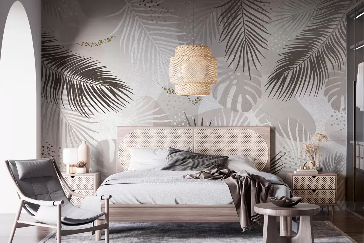 Fotomurales Tendencia abstracta de hojas y líneas tropicales Nr. w03060v1