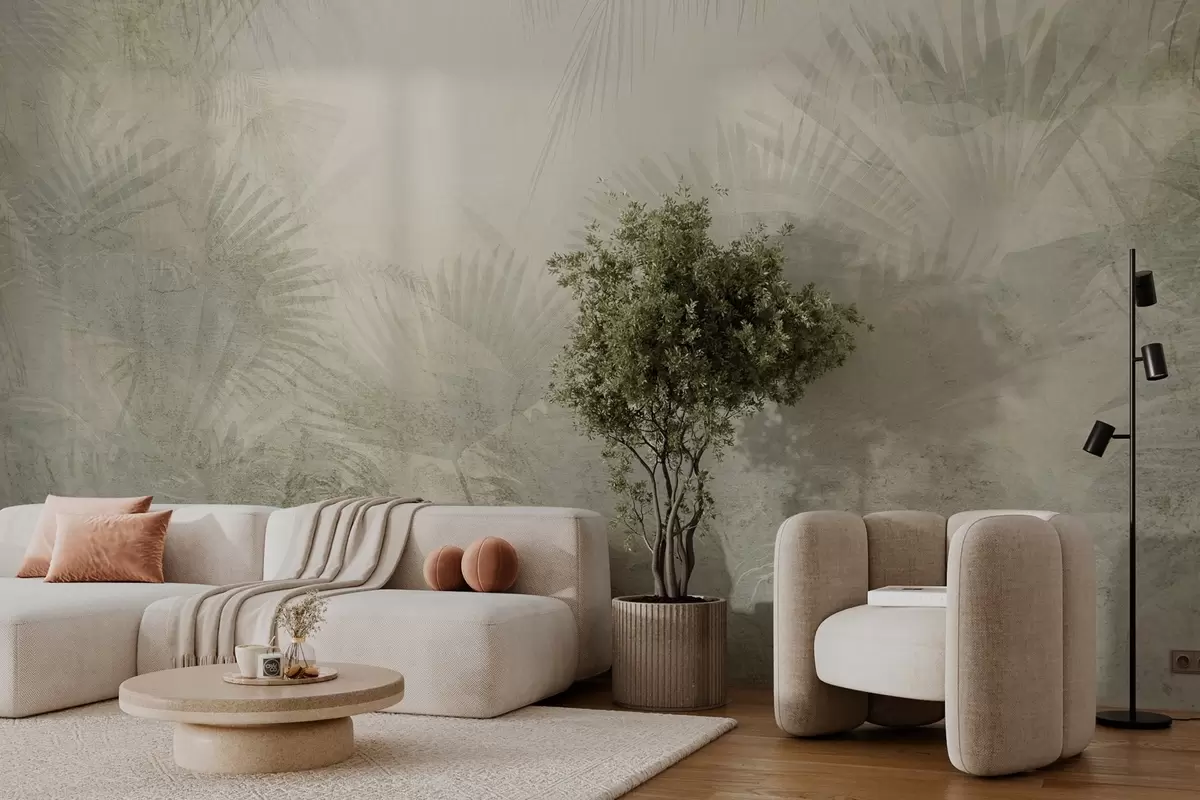 Fotomurales Papel pintado retro tropical texturizado en tonos beige Nr. w03399