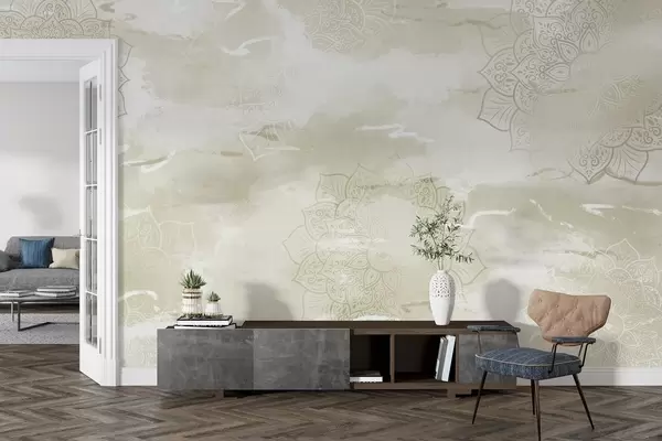 Fotomurales Mandalas sobre fondo pastel, pinceladas vivas, colores verdes Nr. w03409v2