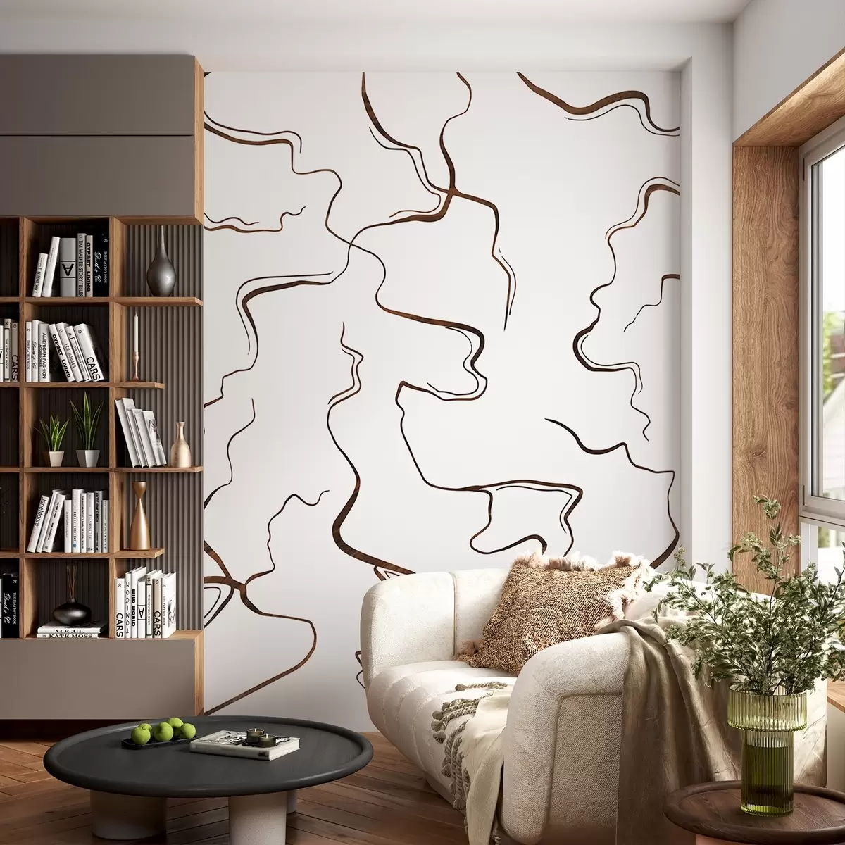 Fotomurales Líneas geométricas, estilo tinta, abstracción, colores marrones Nr. w03436v1