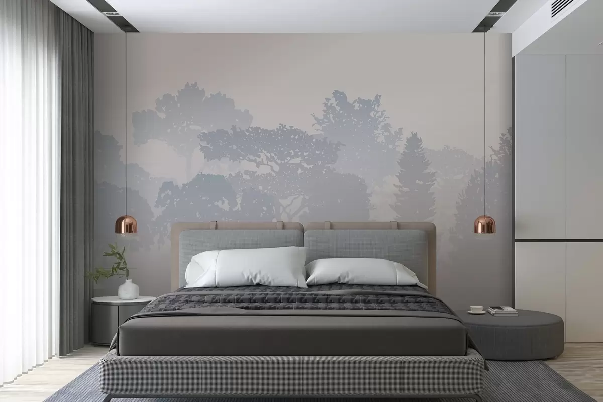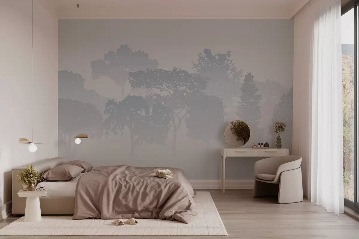 Fotomurales siluetas de árboles en la bruma de la niebla Nr. w03451